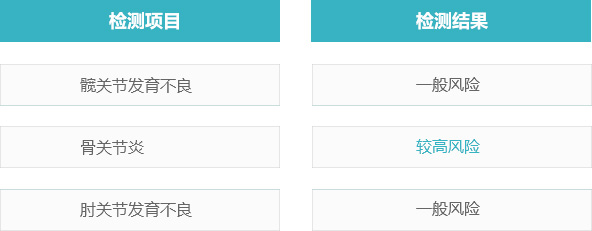 本檢測中涉及到的三項骨骼系統(tǒng)疾病為多基因復(fù)雜疾病,通過檢測跟疾病相關(guān)的多個基因位點進行綜合評估,結(jié)果分為以下3個風(fēng)險等級: